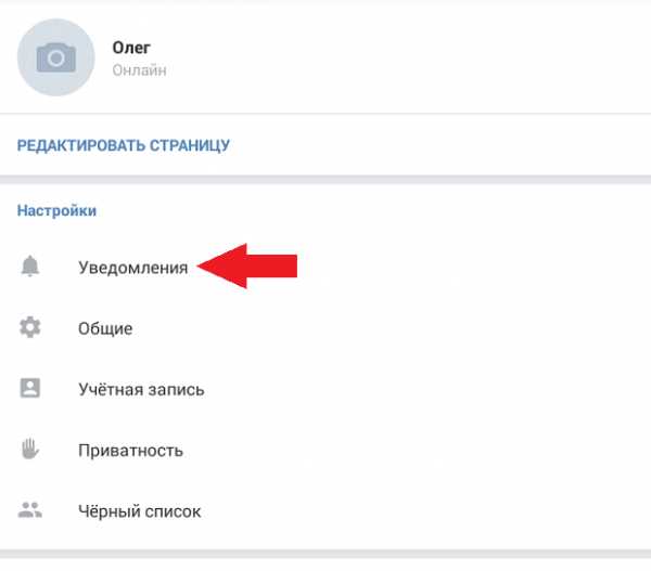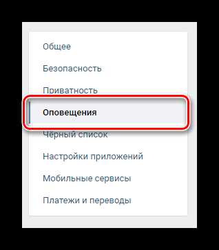 Откроется раздел настроек. Здесь выберите пункт «Уведомления».