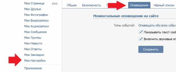 А теперь мы расскажем Вам, что делать, если Вы хотите убрать уведомления о новых сообщениях полностью. Чтобы Вам не надоедал навязчивый звук сообщений или текстовое уведомление, Вам необходимо зайти в «Мои настройки» и выбрать раздел «Оповещения». В этом разделе Вы увидите: «Моментальные оповещения на сайте». Чуть ниже расположены пункты: «Показывать текст сообщений» и «Включить звуковые оповещения». Напротив пунктов Вы увидите галочки. Уберите галочку напротив того пункта, который Вас интересует. Если Вы полностью отключите звуковые уведомления, Вы больше не услышите, когда Вам придет новое сообщение. Если Вы уберете галочку напротив пункта: «Показывать текст сообщений», новые сообщения не будут больше высвечиваться в нижнем левом углу. Поставьте галочки напротив этих двух пунктов или одного из них.Здесь же можно отрегулировать оповещение о других событиях. Если Вы нажмете на ссылку «Оповещать обо всех событиях», перед вами откроется ниспадающее окно, в котором Вы можете полностью отключить оповещения в Контакте или частично. Вы можете настроить оповещения того, что Вас интересует, например, сообщений, заявок в друзья, ответов в комментариях, отметок «Мне нравится» и другого. Это сделает пользование ВКонтакте еще более удобным.